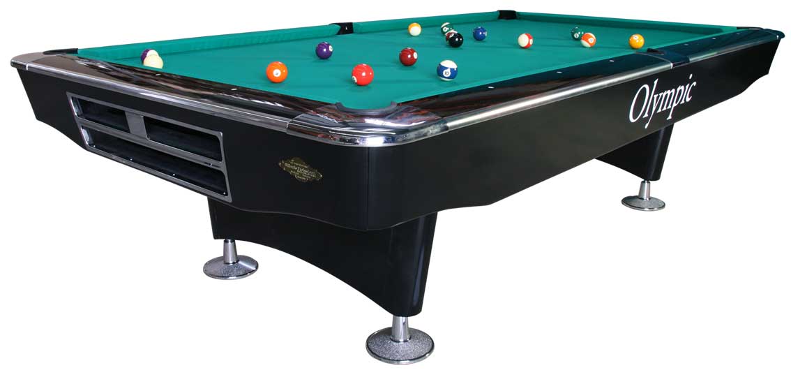 "Олимпик" - официальный стол Чемпионата Мира по пулу. О высочайших игровых качествах бильярда "Олимпик" свидетельствуюк крупнейшие международные турниры по пулу. Борта столов серии "Олимпик" изготовлены из твердых пород дерева и покрыты высокопрочным огнестойким пластиком. На выбор клиента предлагаются два варианта отделки европейского качества.